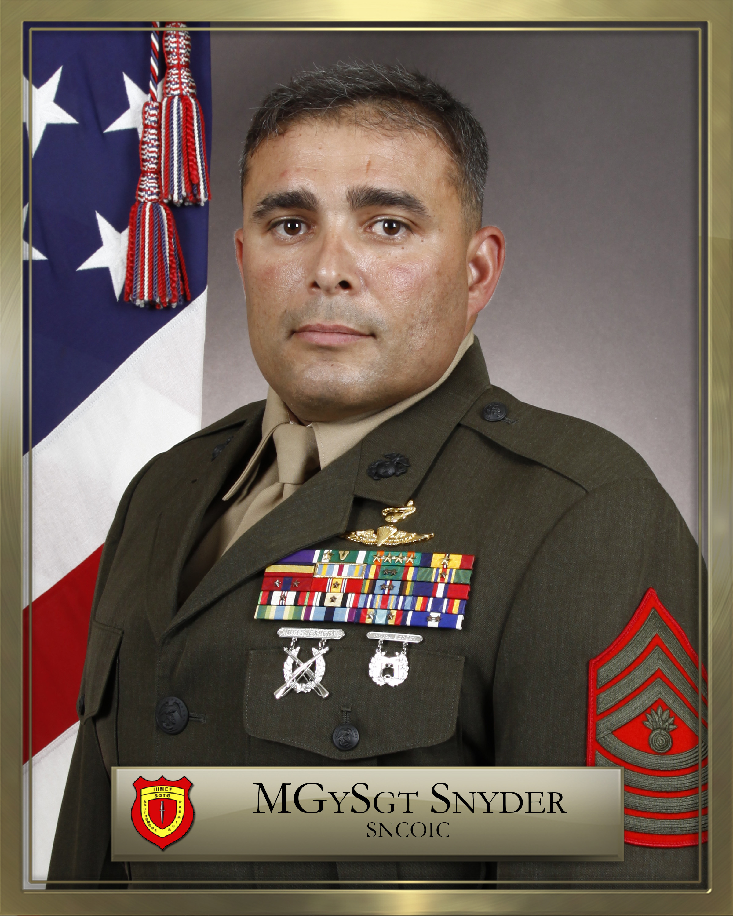 In June 2015, MGySgt Snyder received orders to his current unit 3rd EOTG, 3rd MEF, Camp Hansen, Okinawa, Japan. MGySgt Snyder current billet is SNCOIC.